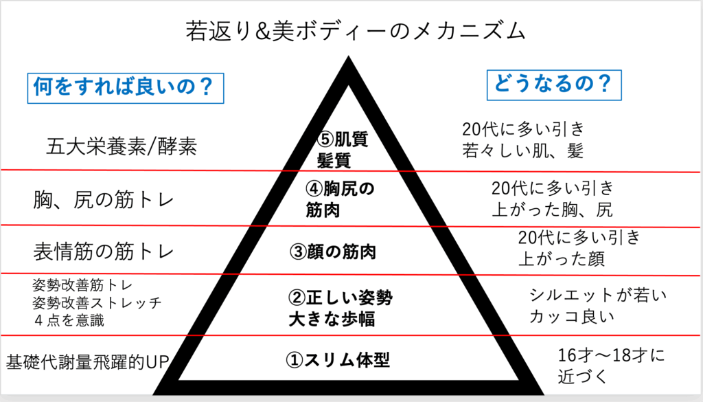 この若返りピラミッドを下から順番にしっかり作り込むと、どんな人でも