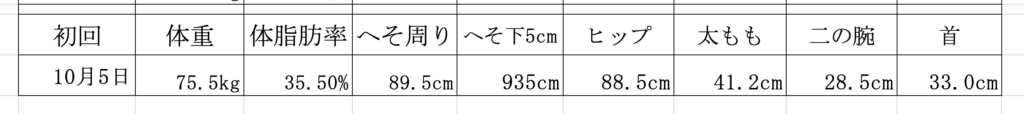 体重・体脂肪率・ウエスト・二の腕・太ももの現状を数値化しておきます。