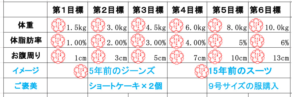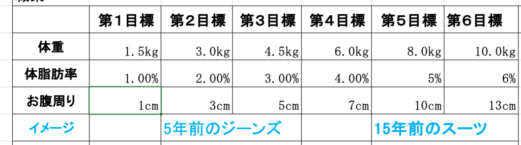 目標体重・目標サイズを明確にしましょう。