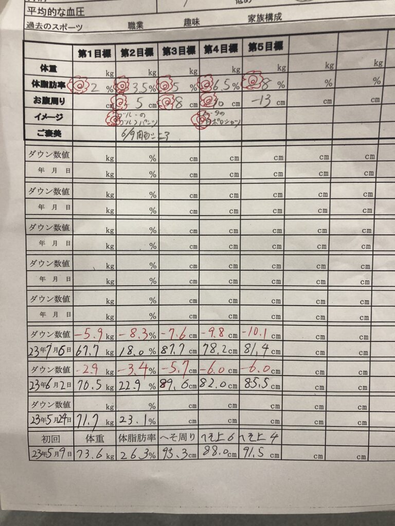 ・体重73.6kg →67.7kg(5.9kgダウン)